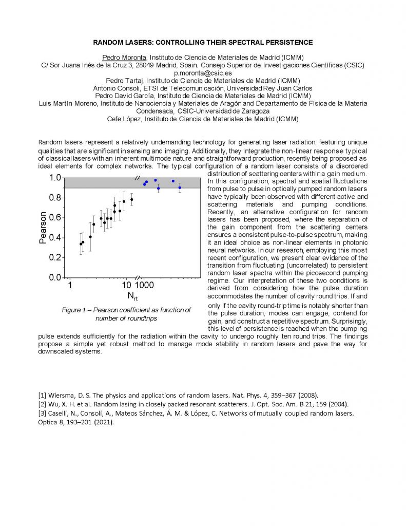 Pedro Moronta from the Instituto de Ciencias Materiales de Madrid (ICMM), will give the seminar entitled “Random lasers: controlling their spectral persistence” on Friday, March 22 at 13:00.